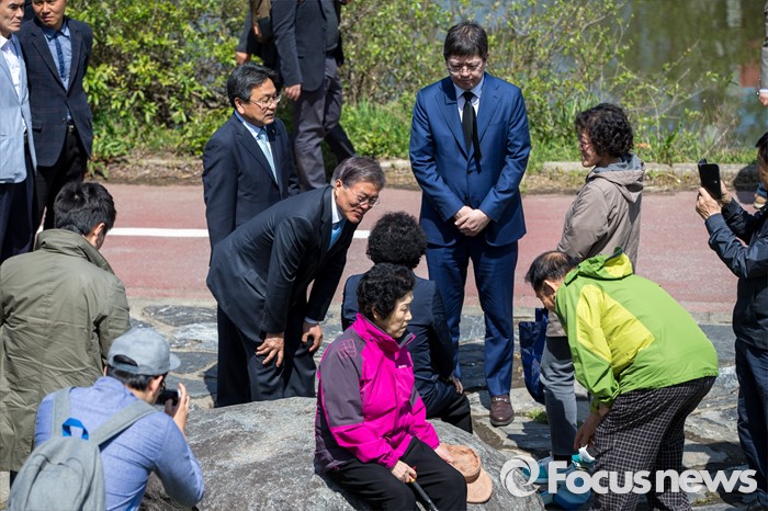 (광주=포커스뉴스) 문재인 더불어민주당 전 대표와 김홍걸 국민통합위원장이 8일 오후 광주시 서구 광주천일대를 거닐며 지역주민들과 인사 하고 있다.