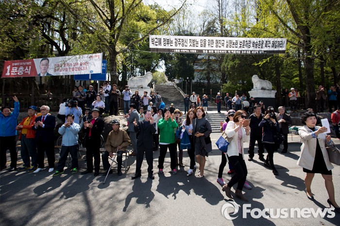 (광주=포커스뉴스) 문재인 더불어민주당 전 대표가 8일 오후 광주시 서구 광주공원에 들어서자 시민들이 박수치며 환영하고 있다.