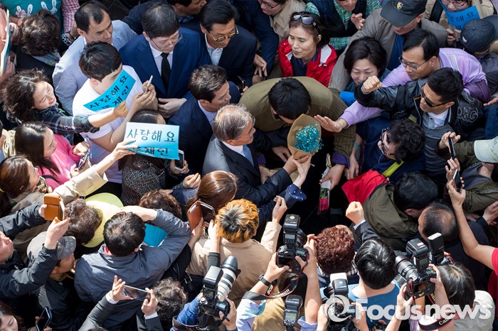 (광주=포커스뉴스) 문재인 더불어민주당 전 대표가 8일 오후 광주광역시 동구 충장로에서 기자회견을 열고 '광주시민께 드리는 글'을 발표한 뒤 지지자들과 악수 하고 있다. 이날 문 전 대표는 "호남이 자신에 대한 지지를 거두겠다면 미련없이 정치 일선에서 물러나고 대선에도 도전하지 않겠다고" 밝혔다.