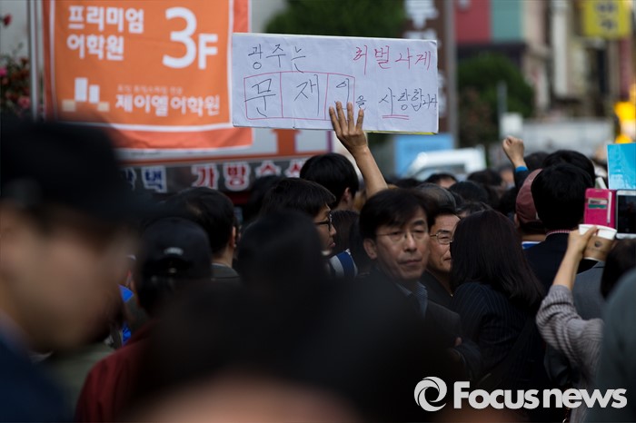 (광주=포커스뉴스) 문재인 더불어민주당 전 대표의 기자회견이 예정된 8일 오후 광주광역시 동구 충장로에서 한 지지자가 문 전 대표를 환영하는 피켓을 들고 있다.