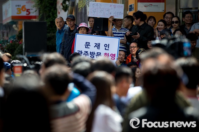 (광주=포커스뉴스) 문재인 더불어민주당 전 대표의 기자회견이 예정된 8일 오후 광주광역시 동구 충장로에서 한 지지자가 문 전 대표를 환영하는 피켓을 들고 있다.