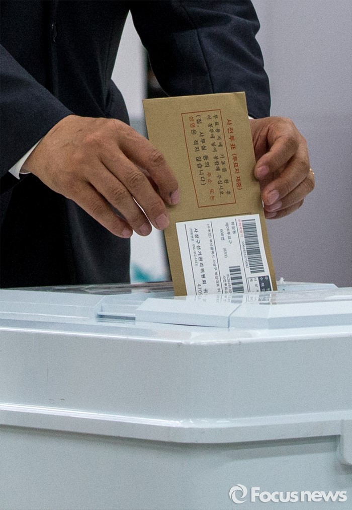 (광주=포커스뉴스) 문재인 더불어민주당 전 대표가 8일 오후 광주광역시 북구청에 마련된 사전투표소에서 투표를 하고 있다.