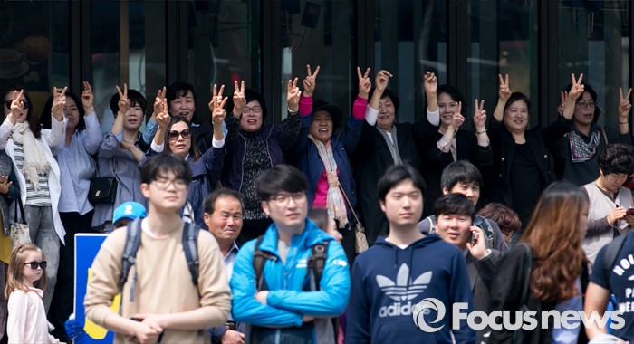 (대전=포커스뉴스) 9일 오후 대전 갤러리아백화점 타임월드점 앞에서 시민 및 지지자들이 더불어민주당 대전 서구 합동유세를 지켜보고