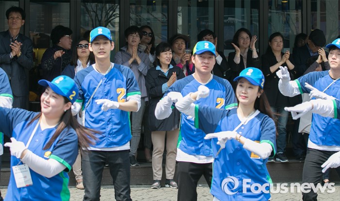 (대전=포커스뉴스) 9일 오후 대전 갤러리아백화점 타임월드점 앞에서 열린 더불어민주당 대전 서구 합동유세를 지켜보는 시민 및 지지자들이 선거운동원들의 율동을 보며 박수치고 있다.