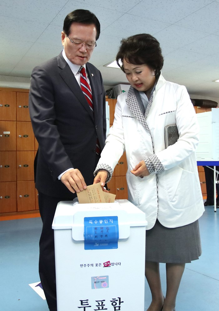 | △ 사전투표하는 정의화 국회의장 내외 |