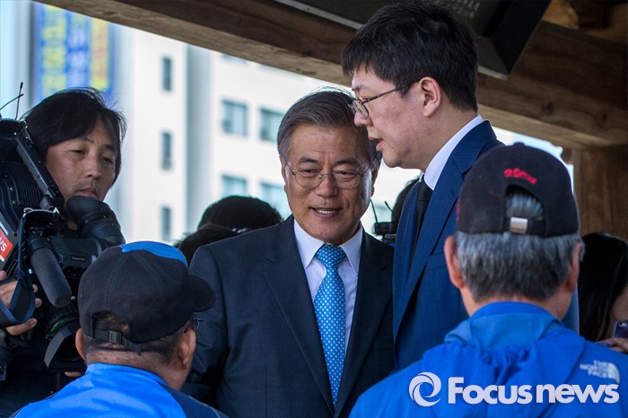 (정읍/전주=포커스뉴스) 문재인 전 더불어민주당 대표가 9일 호남 방문 이후 처음으로 단상에 올라 지원유세를 벌이고 지지를 요청하면서 큰절까지 했다.