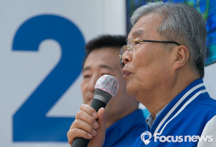 (서울=포커스뉴스) 김종인 더불어민주당 비대위 대표 겸 선대위원장이 10일 오전 서울 석촌호수 서호 인근 거리에서 최명길 송파을 후보의 지지를 호소하고 있다.