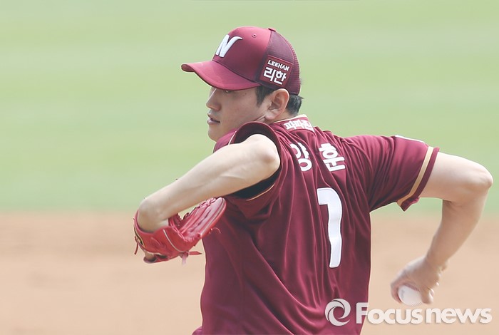 (서울=포커스뉴스) 10일 서울 잠실구장에서 열린 2016 프로야구 넥센-두산 경기에서 1회말 넥센 선발투수 양훈이 투구하고 있다.