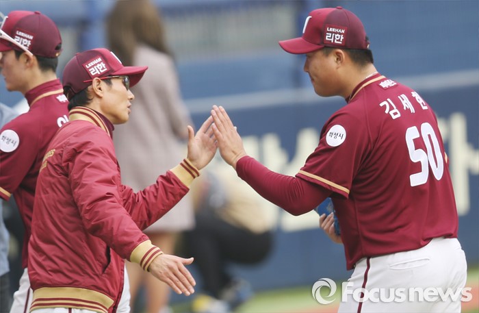 | △ 염경엽 감독과 김세현의 하이파이브 |