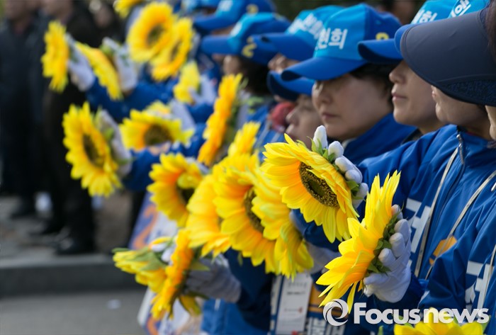 | △ 해바라기 들고 지지 호소 |