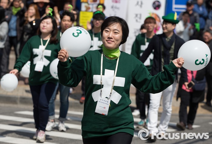 | △ 춤추는 국민의당 선거 사무원 |
