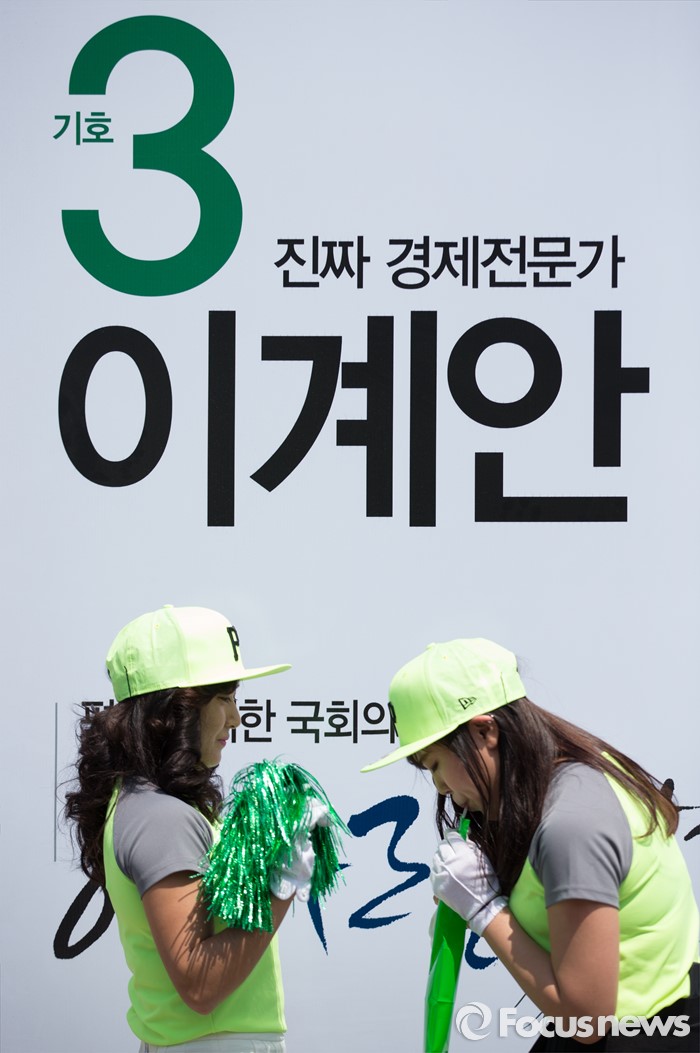 (평택=포커스뉴스) 안철수 국민의당 상임공동대표가 11일 오후 안산시 평택역 광장 앞에서 이계안 평택시을 후보와 최인규 평택시갑 후보 지원 유세를 하고 있는 가운데 선거운동원들이 이계안 후보 포스터 앞에 서 있다.