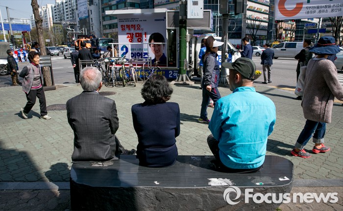 (광명=포커스뉴스) 20대 총선을 이틀 앞둔 11일 오후 경기도 광명 하안사거리에서 시민 및 지지자들이 김종인 더불어민주당 비대위 대표 겸 선대위원장의 이언주 광명을 후보 지지 발언을 듣고 있다.