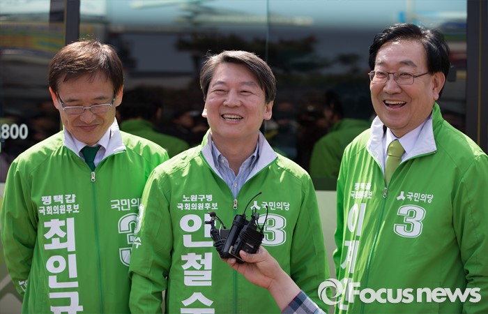 (평택=포커스뉴스) 안철수 국민의당 상임공동대표가 11일 오후 안산시 평택역 광장 앞에서 이계안 평택시을 후보와 최인규 평택시갑 후보 지원 유세를 마치고 인터뷰하고 있다.