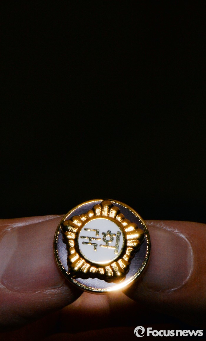 (서울=포커스뉴스) 4.13총선을 이틀 앞둔 11일 오후 서울 여의도 국회에서 20대 국회의원 당선자들이 착용할 배지가 공개되고 있다.