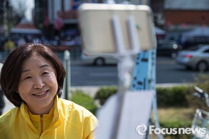 (고양=포커스뉴스) 11일 오후 경기도 고양시 덕양구 세이브존 쇼핑몰 앞에서 심상정 정의당 후보가 시민들을 향해 한 표를 호소하고 있다.