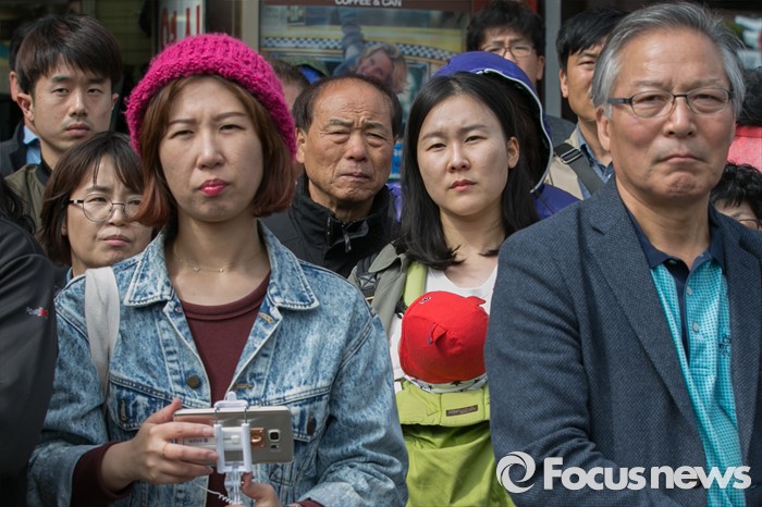 (부산=포커스뉴스) 문재인 전 더불어민주당 대표가 11일 오후 부산시 사상구 가야대로 주례럭키아파트 앞에서 배재정 더불어민주당 사상 후보 지원유세를 하는동안, 시민들이 경청하고 있다.
