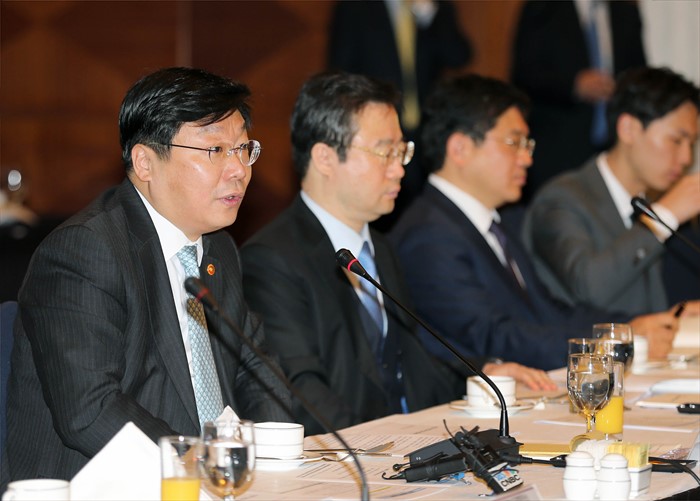 (서울=포커스뉴스) 주형환 산업통상자원부 장관이 11일 오전 서울 강남구 역삼동 벨레상스 서울호텔 다이아몬드볼룸에서 열린 신산업 민관협의회 제1차 회의에 참석해 인사말을 하고 있다.