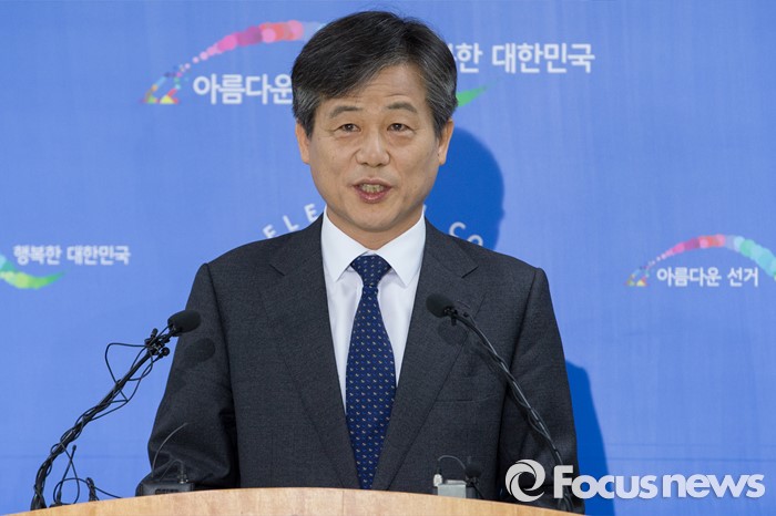 (과천=포커스뉴스) 이인복 중앙선거관리위원장이 제20대 국회의원선거를 하루 앞둔 12일 오전 경기도 과천시 중앙선거관리위원회에서 투표 참여를 독려하는 대국민 담화문을 발표하고 있다.