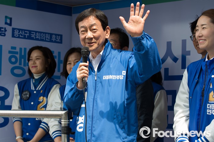 (서울=포커스뉴스) 2016 제20대 국회의원선거를 하루 앞둔 12일 오후 서울 용산구 후암시장 인근에서 진영 서울 용산구 후보가 유권자들에게 지지를 호소하고 있다.