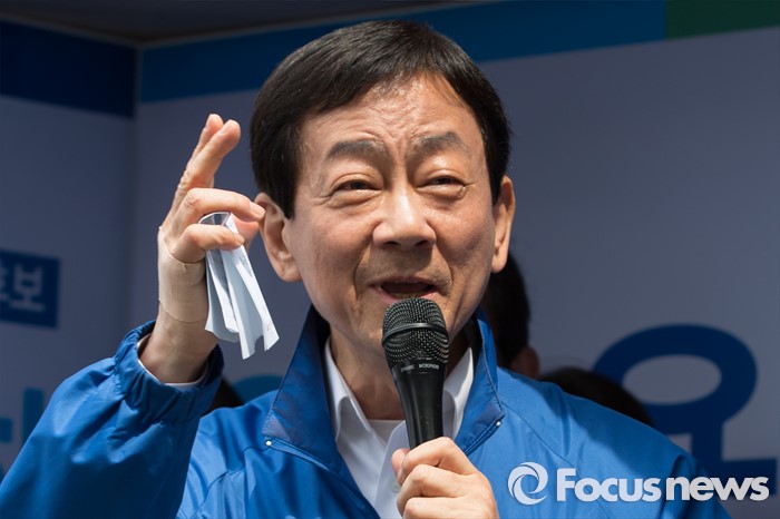 (서울=포커스뉴스) 2016 제20대 국회의원선거를 하루 앞둔 12일 오후 서울 용산구 후암시장 인근에서 김종인 더불어민주당 비대위 대표 겸 선대위원장과 진영 서울 용산구 후보가 유권자들에게 지지를 호소하고 있다.