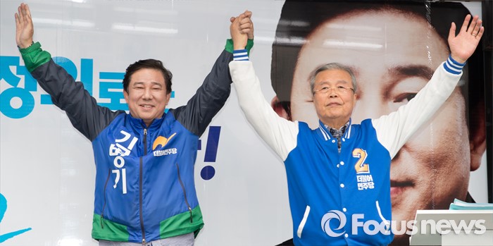 (서울=포커스뉴스) 2016 제20대 국회의원선거를 하루 앞둔 12일 오후 서울 동작구 노량진역 인근에서 김종인 더불어민주당 비대위 대표 겸 선대위원장과 김병기 동작갑 후보가 유권자들에게 지지를 호소하고 있다.