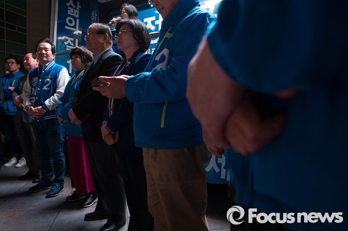 (서울=포커스뉴스) 20대 총선을 하루 앞둔 12일 오후 서울 종로구의 한 아파트 일대에서 정세균 더불어민주당 종로구 후보가 막바지 선거유세를 하고 있다.