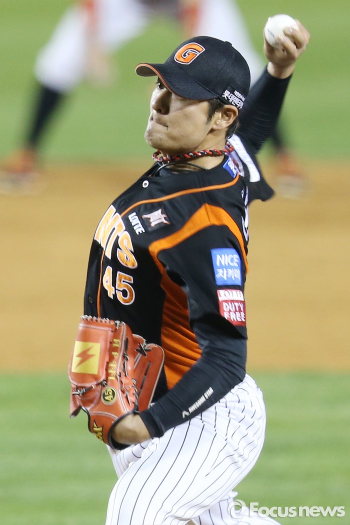(서울=포커스뉴스) 12일 서울 잠실구장에서 열린 2016 프로야구 롯데-LG 경기에서 롯데 투수 이정민이 4회에 등판해 투구하고 있다.