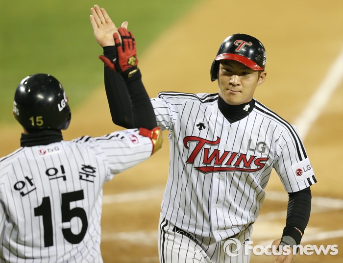 (서울=포커스뉴스) 12일 서울 잠실구장에서 열린 2016 프로야구 롯데-LG 경기 6회말 1사 1루에서 LG 1루주자 오지환이 정주현의 2루타때 홈인하고 있다.