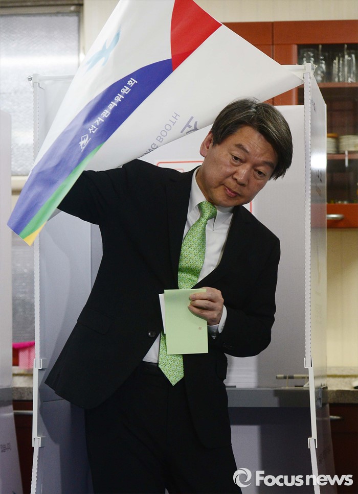 (서울=포커스뉴스) 안철수 국민의당 상임공동대표가 제20대 국회의원선거날인 13일 서울 노원구 상계1동 제7투표소에서 투표를 마친 후 기표소를 나오고 있다.