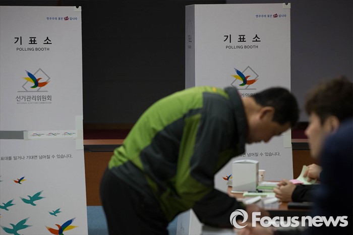 (서울=포커스뉴스) 제20대 국회의원선거일인 13일 오전 서울 성북구의 한 투표소에서 유권자들이 투표를 하고 있다.