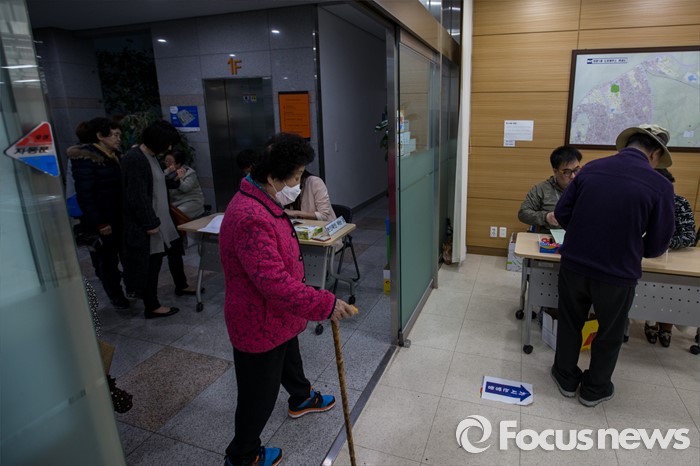 (대구=포커스뉴스) 제20대 국회의원선거날인 13일 오전 대구 수성구 만촌주민센터에 마련된 투표소에서 유권자들이 투표를 하고 있다.