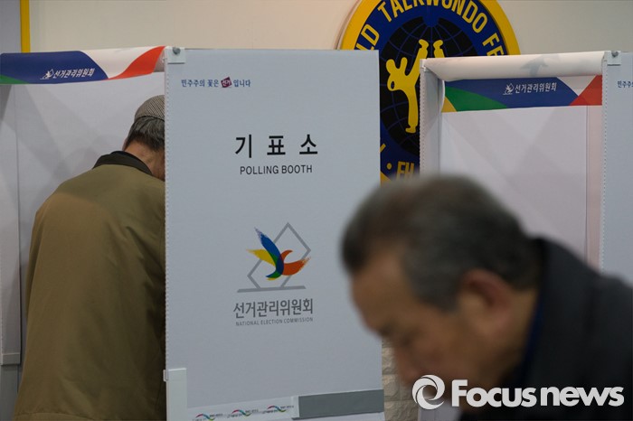 (서울=포커스뉴스) 제20대 국회의원선거일인 13일 오전 서울 강서구 화곡제8동 제5투표소에서 유권자들이 투표하고 있다.