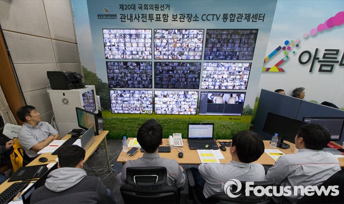 (서울=포커스뉴스) 제20대 국회의원선거일인 13일 오후 경기도 과천 중앙선거관리위원회에 마련된 선거상황실에서 CCTV 통합관제센터 관계자들이 관내사전투표함 보관장소를 실시간 감시하고 있다.