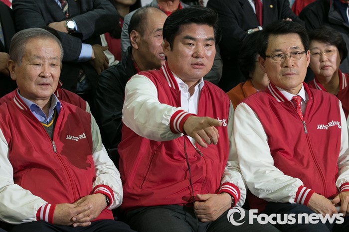 (서울=포커스뉴스) 제20대 국회의원 선거날인 13일 오후 서울 여의도 새누리당사에서 원유철(가운데) 원내대표와 이군현(오른쪽) 공동총괄본부장이 방송 3사의 출구조사를 시청하며 대화하고 있다. 왼쪽은 강봉균 공동선대위원장.