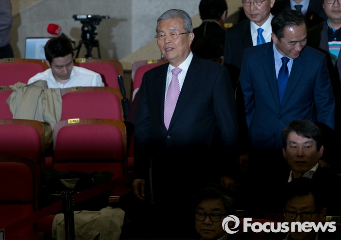 (서울=포커스뉴스) 20대 총선 투표일인 13일 오후 서울 여의도 국회 의원회관 대회의실에 마련된 더불어민주당 개표상황실에서 김종인 비대위 대표 겸 선대위원장 등 선대위원들이 입장하고 있다.