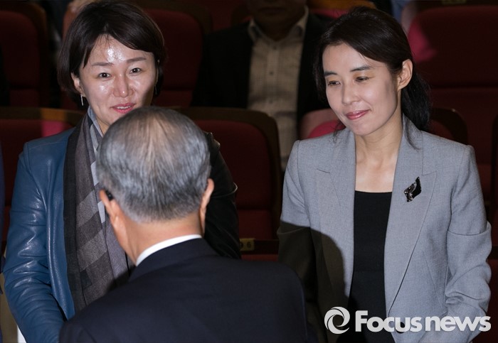 (서울=포커스뉴스) 20대 총선 투표일인 13일 오후 서울 여의도 국회 의원회관 대회의실에 마련된 더불어민주당 개표상황실에서 김종인(가운데) 비대위 대표 겸 선대위원장이 입장하며 박경미(오른쪽), 이재정 비례대표 후보와 인사하고 있다.