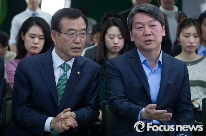 (서울=포커스뉴스) 안철수 국민의당 상임공동대표(가운데)와 임내현 선거대책위 상황본부장(왼쪽)이 13일 오후 서울 마포구 당사 개표상황실에서 개표 방송을 지켜보고 있다.
