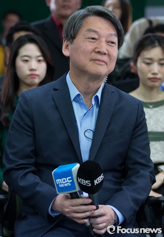(서울=포커스뉴스) 안철수 국민의당 상임공동대표가 13일 오후 서울 마포구 당사 개표상황실에서 지도부와 함께 개표 방송을 지켜보고 있다.