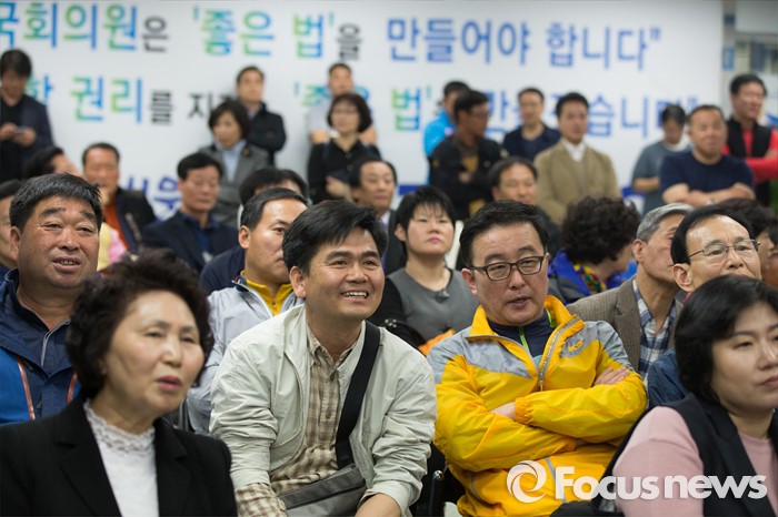 (서울=포커스뉴스) 13일 오후 서울 은평구 강병원 더불어민주당 은평구을 후보의 사무실에서 지지자들이 개표방송을 보고 있다.
