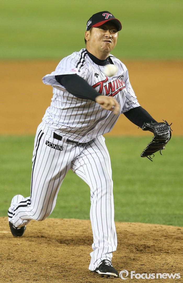 (서울=포커스뉴스) 13일 서울 잠실구장에서 열린 2016 프로야구 롯데-LG 경기 7회초 LG 투수 신승현이 투구하고 있다.
