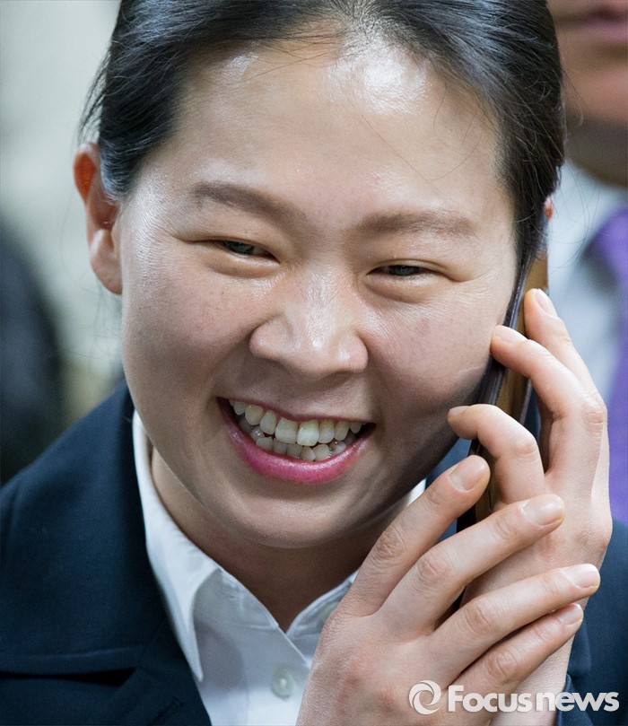| △ 축하 전화 받는 권은희 |