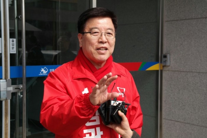 (서울=포커스뉴스) 13일 오후 9시 15분 KBS는 개표율 36.1% 현재 경북 안동의 김광림 새누리당 후보가 72.4%를 득표해 당선이 확실하다고 밝혔다.<사진출처=김광림 공식 블로그>