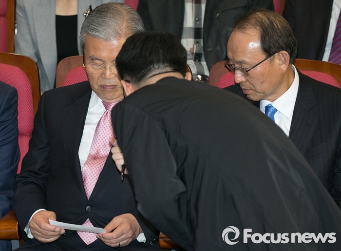 (서울=포커스뉴스) 20대 총선 투표일인 13일 오후 서울 여의도 국회 의원회관 대회의실에 마련된 더불어민주당 개표상황실에서 김종인(왼쪽) 비대위 대표 겸 선대위원장과 이재경(가운데) 선대위 대변인, 최운열 국민경제상황실장이 대화하고 있다.