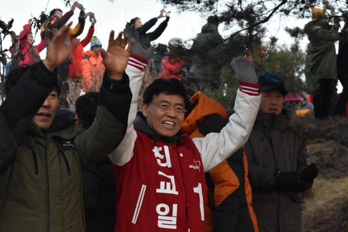 2위는 32.7%를 기록한 김수철 무소속 후보가 차지했다.<사진출처=최교일 후보 페이스북>