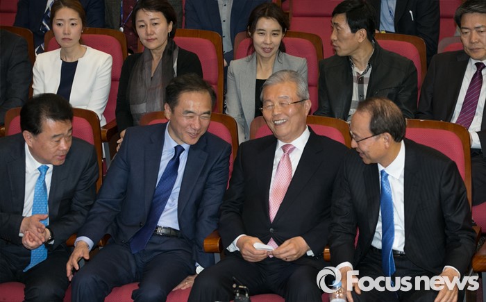 (서울=포커스뉴스) 20대 총선 투표일인 13일 오후 서울 여의도 국회 의원회관 대회의실에 마련된 더불어민주당 개표상황실에서 김종인 비대위 대표 겸 선대위원장과 당직자들이 개표방송을 시청하며 대화하고 있다. 앞줄 왼쪽부터 김성수 대변인, 정장선 총선기획단장, 김 대표, 최운열 국민경제상황실장.