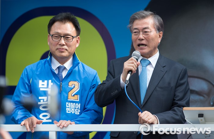 2위는 31.6%(3만1879표)를 차지한 새누리당 박수영 후보가 차지했다. 이어 국민의당 김명수 후보 13.6%, 정의당 박원석 후보가 7.6% 득표율로 뒤를 이었다.(수원=포커스뉴스) 6일 오후 경기 수원시 영통구 매탄1동 주민센터 앞에서 문재인 더불어민주당 전 대표가 박광온 더민주 수원시정 후보 지원유세를 하고 있다. 2016.04.06 김인철 기자