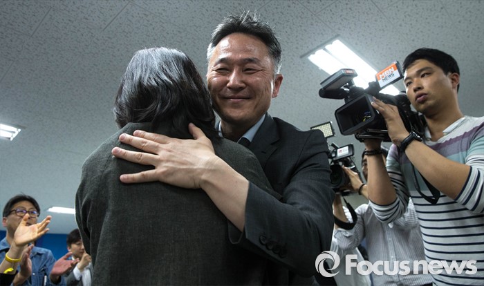 | △ 기쁨의 포옹 나누는 표창원 |