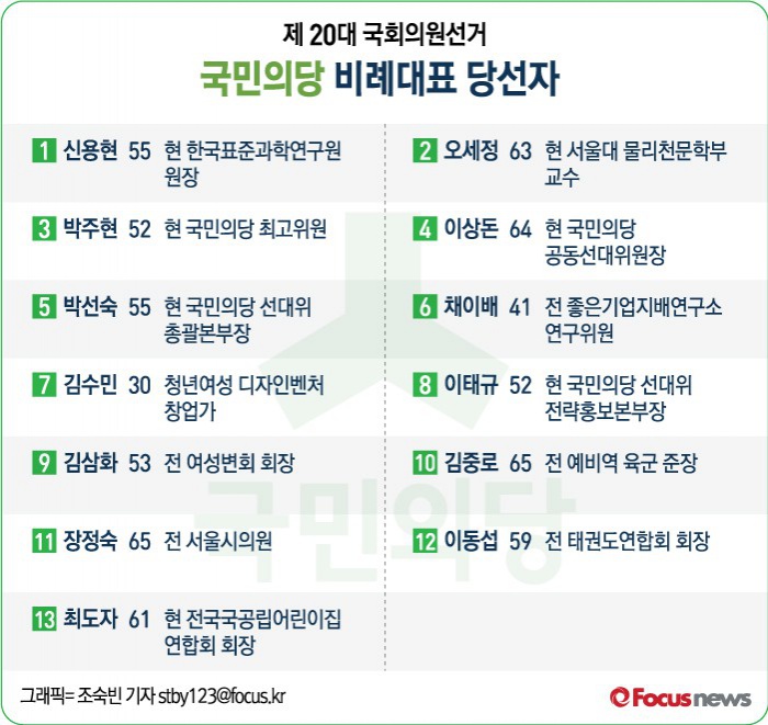 (서울=포커스뉴스) 제 20대 국회의원선거 결과, 국민의당은 총 13명의 비례대표가 국회에 입성할 수 있게 됐다.