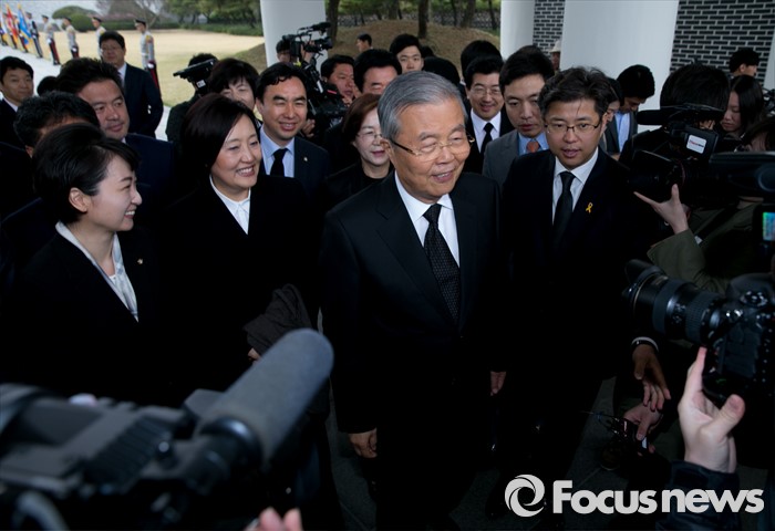 (서울=포커스뉴스) 14일 오전 동작구 국립서울현충원에서 김종인 더불어민주당 비대위 대표와 20대 총선 당선인들이 현충탑 참배를 마친 뒤 나서고 있다.